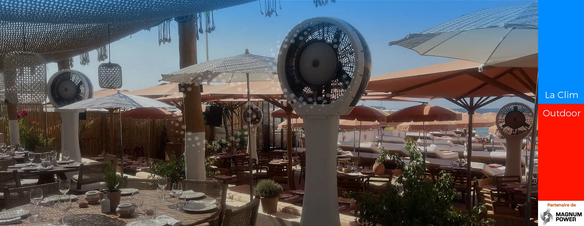 Grâce à l’humidification de l’air, la sensation de fraîcheur est immédiate, sans mouiller les surfaces ou les personnes (15 microns). C’est une solution idéale pour les terrasses, jardins, patios, restaurants ou événements en plein air.