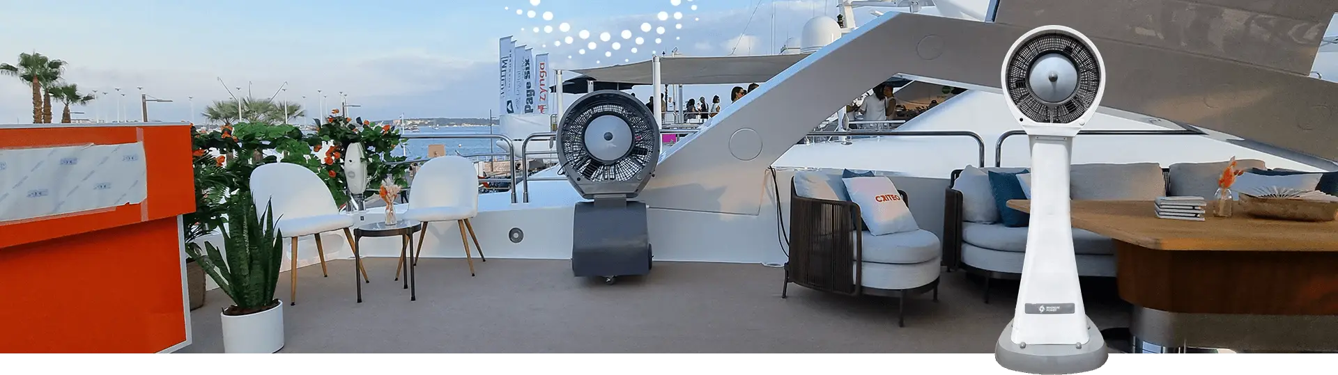 Grâce à une technologie de diffusion par centrifugation, ils couvrent efficacement toute surface ensoleillées ou non ventilées, qu’il s’agisse d’un balcon privé ou d’une grande terrasse de café.