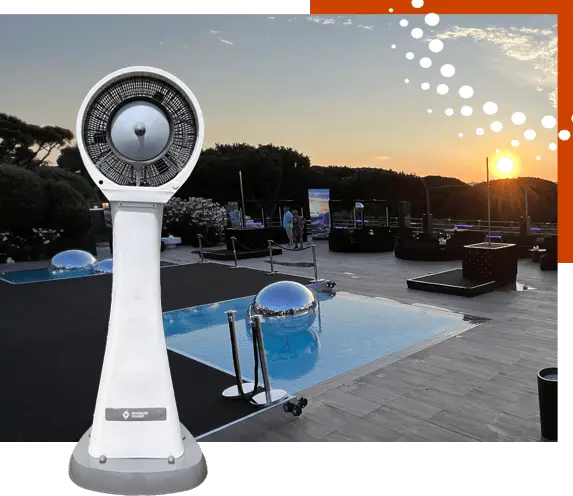Leur efficacité repose sur une climatisation de l’air par ventilation de gouttes d’eau ultra fine, qui s’évaporent instantanément pour rafraîchir sans mouiller. Le cycle naturel de l’eau est ainsi respecté.