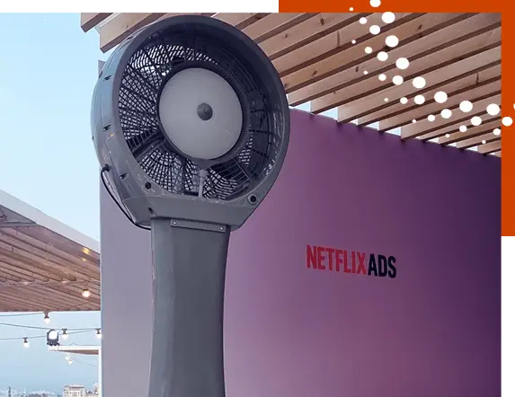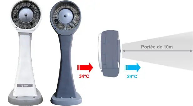 Silencieux et efficace sur de grandes surfaces ensoleillées ou pour de grandes affluences.